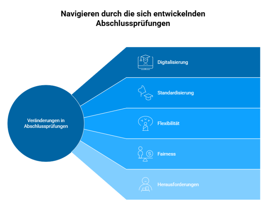 Die Zukunft der Abschlussprüfungen ist offen – aber geprägt vom Wandel. Die Digitalisierung wird weiter an Bedeutung gewinnen: Online-Prüfungen, automatisierte Bewertung und digitale Zertifikate könnten klassische Prüfungsformate ergänzen oder sogar ablösen. Gleichzeitig wächst der Druck, Prüfungen individueller, kompetenzorientierter und fairer zu gestalten. Alternative Prüfungsformen wie Portfolio-Arbeiten, Projektpräsentationen oder kontinuierliche Leistungsnachweise könnten an Bedeutung gewinnen.