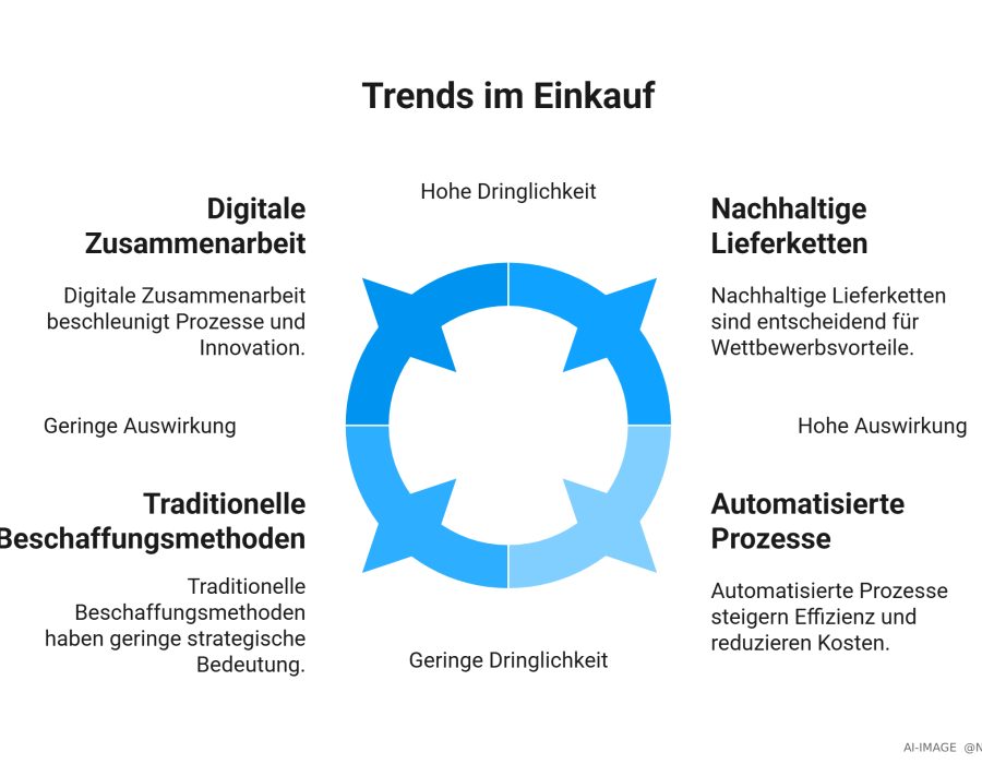 KI transformiert den Prozess: Von Chatbots, die Angebote einholen, über automatisierte Rechnungsbearbeitung bis hin zu risikoorientierten Sourcing-Strategien – intelligente Tools werden zum Alltag im Einkauf. Die wichtigsten digitalen Zukunftsfelder:
