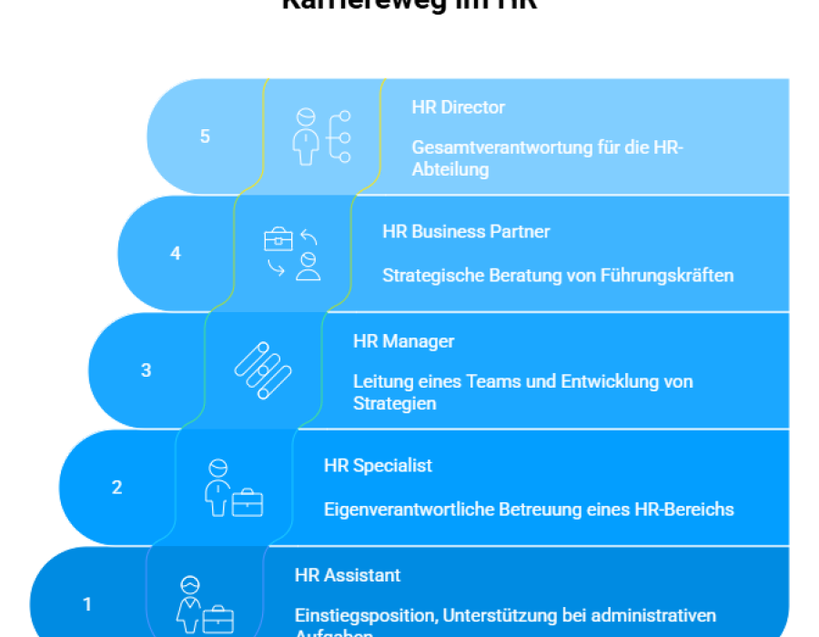 Dein Karriereweg im HR kann ganz unterschiedlich verlaufen. Viele starten als HR Assistant oder Junior HR Generalist und übernehmen mit wachsender Erfahrung mehr Verantwortung. Nach einigen Jahren kannst du dich auf einen Bereich spezialisieren – etwa Recruiting, Personalentwicklung oder Arbeitsrecht – oder in eine leitende Funktion aufsteigen.