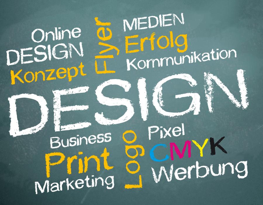 Gestalterische Grundlagen: Typografie, Farbpsychologie, Layout, Bildsprache und Kompositionslehre.