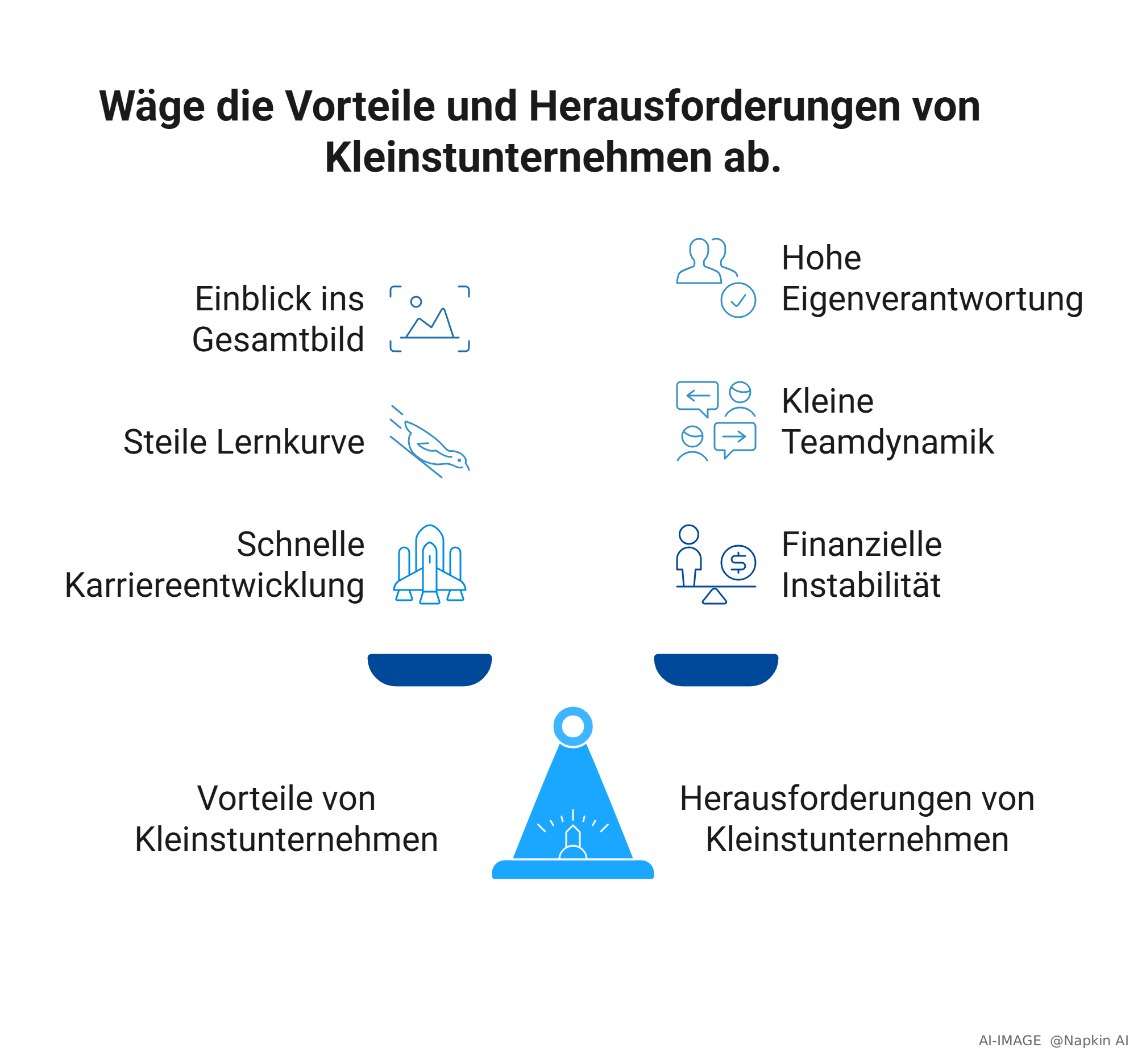 Doch so attraktiv die Vorteile sind – Kleinstunternehmen fordern auch viel von Mitarbeitern. Die Strukturen sind oft weniger standardisiert, Prozesse nicht bis ins letzte Detail geregelt. Das bedeutet: Die tägliche Arbeit setzt Eigenverantwortung voraus. Wer lieber in einem festen Rahmen und klar definierten Rollen arbeitet, kann sich schnell überfordert fühlen.